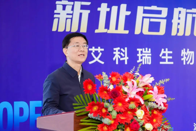 随后,望城经开区党工委副书记、管委会主任周剀先生上台致辞。周主任对艾科瑞生物超级工场的投产表示热烈祝贺,强调这一项目是望城践行 “三高四新” 美好蓝图、推进 “一二三六” 发展思路的重要成果,将为望城打造百亿级生物医药产业集群注入强大动力,也对望城经开区的高质量发展具有重要意义。