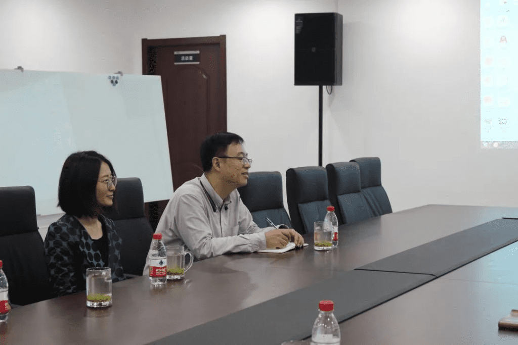 在会议室,艾科瑞生物研发主管向聂舟教授团队详细的介绍了我司的发展情况,并就科研成果的转化、产学融合等双方感兴趣的话题与聂舟教授进行了深入的探讨交流。