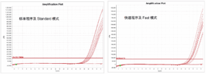 1、对于低拷贝的病毒模板,标准模式与快速模式不同复孔 ct 均值的差值 △ct<0.5,且出值率相当;