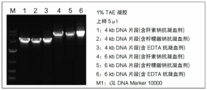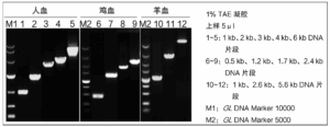 *3: If the electrophoresis shows hanging holes, add 1-3 μl (20 mg/ml) of protease (adjusted according to the severity of hanging holes), centrifuge for 5 min and then electrophoresis again, and the target bands can be seen.