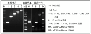① This product has strong amplification performance and wide applicability of templates, which is suitable for PCR amplification of various types of samples after direct or simple lysis; it does not require DNA purification, which shortens the length of experiments and saves costs; it can amplify DNA fragments of up to 12 kb in length by directly using rice leaves as templates.