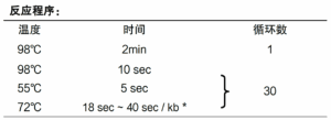 *: Yeast liquid extension rate is 20 sec ~ 40 sec / kb.