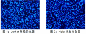 2. DAPI binds to dsDNA with a typical blue fluorescence, which is ideal for use in cell biology experiments with green and red fluorescent groups in multicolor experiments.