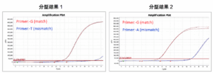 1. In the typing result 1, according to the amplification curve, it was found that the wild-type template amplified normally, and the mutant template did not have obvious peaks, which could distinguish the mutant type from the wild-type significantly;