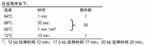 ② 2X Exp Taq HS PCR Master Mix Ver.2 扩增性能较好,本产品以 λDNA 为模板可扩增 ~40 kb 的 DNA 片段,以 Human 基因组 DNA 为模板可扩增 ~20 kb 的 DNA 片段。