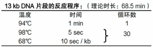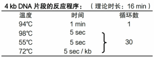挑取 E.coli 单菌落加入至 20 μl RNase free water 中,混匀后取 1 μl 菌液为模板,扩增不同长度的 DNA 片段,能以 3 sec / kb 扩增出 7 kb DNA 片段。