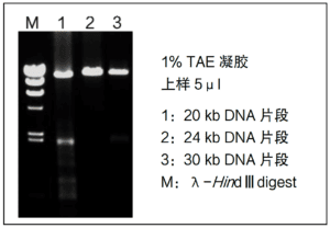 以 Human gDNA 为模板,采用本试剂盒扩增不同长度 DNA 片段,可很好扩增 30 kb 的 DNA 片段。