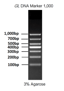 本产品由1000 bp,700 bp,500 bp,400 bp,300 bp,200 bp, 100 bp 七条带组成。